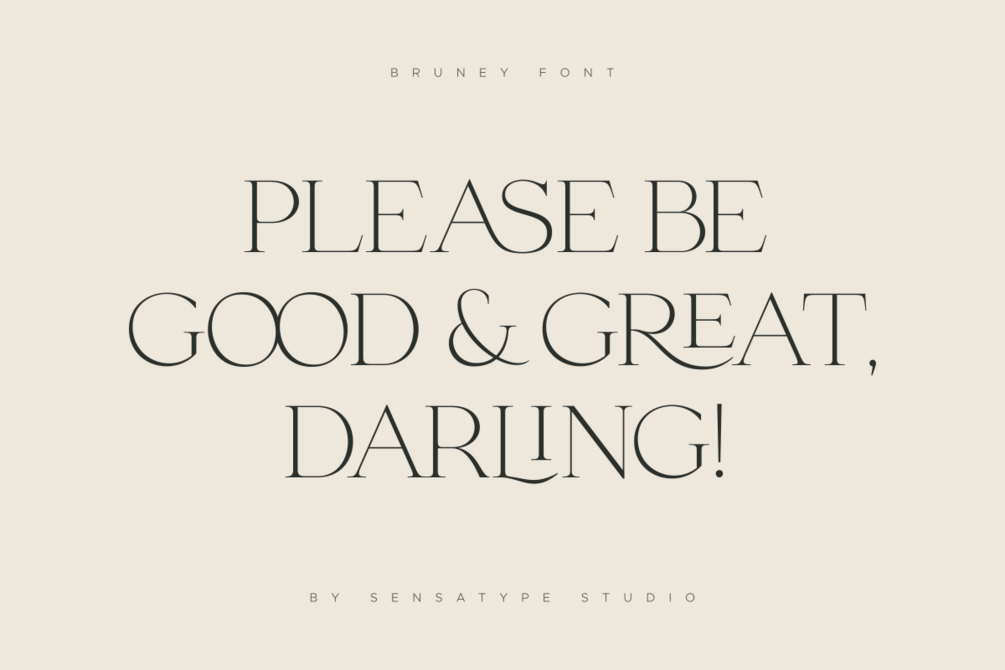 Its refined letterforms maintain readability while adding a unique, high-end touch to every design. Perfect for both print and digital use, BRUNEY elevates your creative work with style and professionalism.