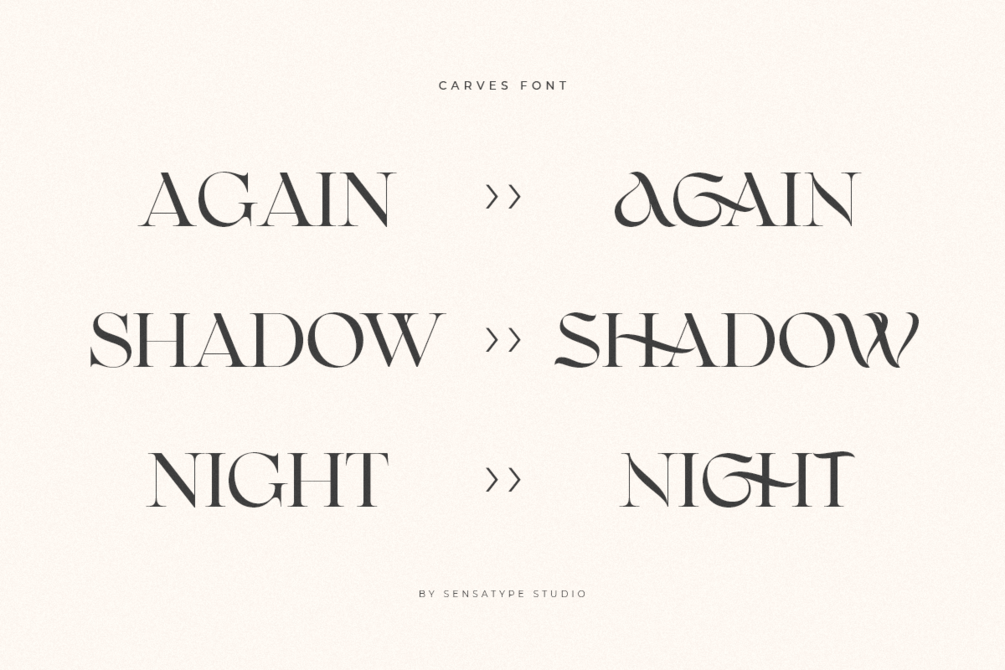 For a comprehensive overview of the Carves license → https://www.sensatype.com/product/carves-modern-display-font