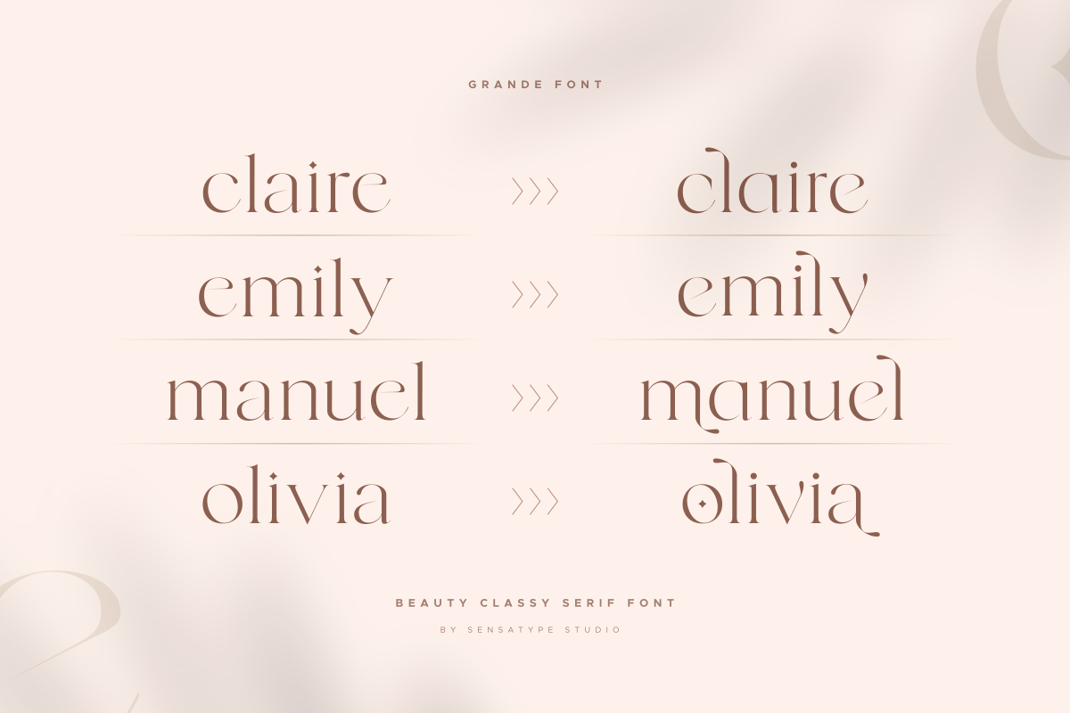 For a comprehensive overview of the Grande license → https://www.sensatype.com/product/grande-beauty-classy-serif-font